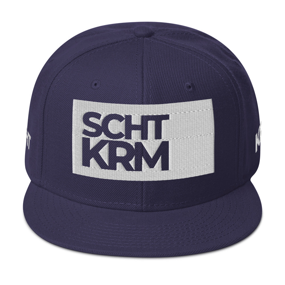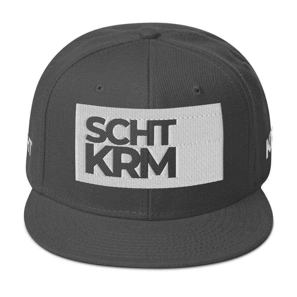 Das gestickte SCHTKRM-Logo auf der Front macht diese Snapback zum minimalistischen Statement-Piece. Strukturiert, profiliert und mit dezent grauem Untervisier – ein Design, das durch Reduktion überzeugt.